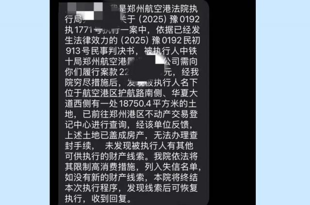 刘丽来自河南郑州富盈网,纠缠她三年的烂尾楼官司在 2025 年 6 月走到了终本裁定,即终止执行。刘丽和执行法院联系时发现,开发商已被列为失信被执行人,名下无任何可执行资产,账户无资金,和刘丽一样的烂尾楼业主们正在排队等待。除非刘丽向执行院提供新的财产线索,否则她付出的 22 万多首付将无法收回。
